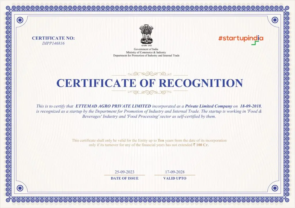 Ettemad Agro is registered as a Micro, Small & Medium Enterprise (MSME) under the Ministry of MSME, Government of India. This certification provides business benefits including procurement preference, technology upgradation, and financial incentives, strengthening Ettemad Agro’s position as a trusted B2B meat supplier.