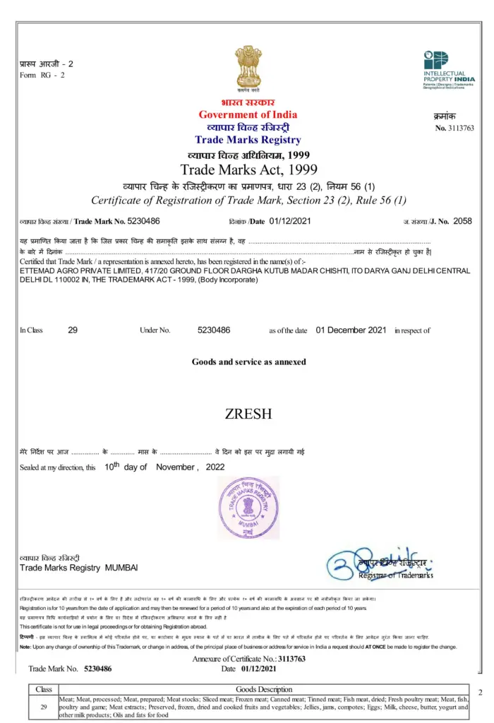 Zresh Fresh Meat is a premium fresh meat brand by Ettemad Agro. The Zresh Certificate validates adherence to highest standards of meat quality, freshness, and safety. It ensures farm-to-table transparency, cold chain management, and strict hygiene protocols for delivering superior fresh meat products to B2B customers.